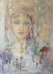 2022Mixed media op papier in diep zwart lijstje 25x25